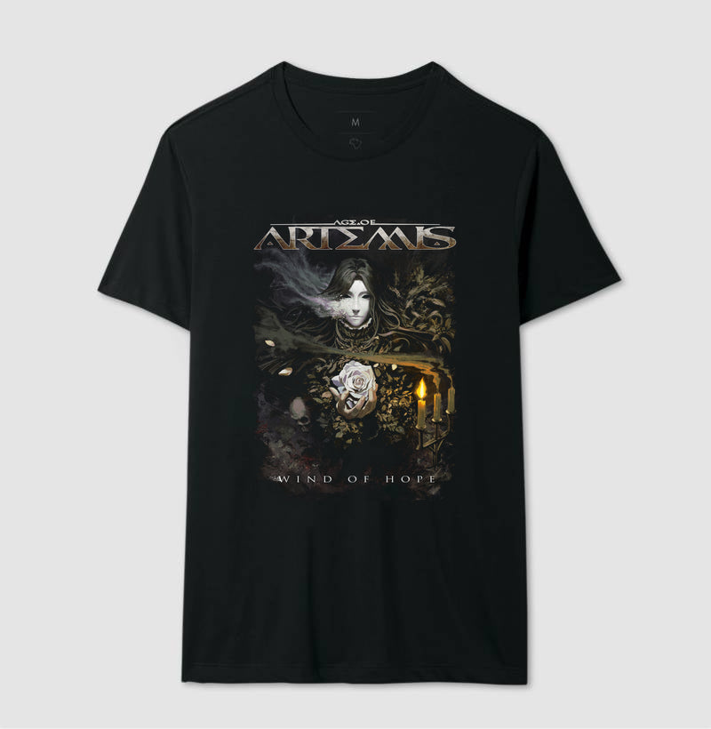 Camiseta preta com a arte do aguardado single Wind of Hope em cores. A malha é 100% algodão e a linda estampa é feita através de impressão digital de alta qualidade.